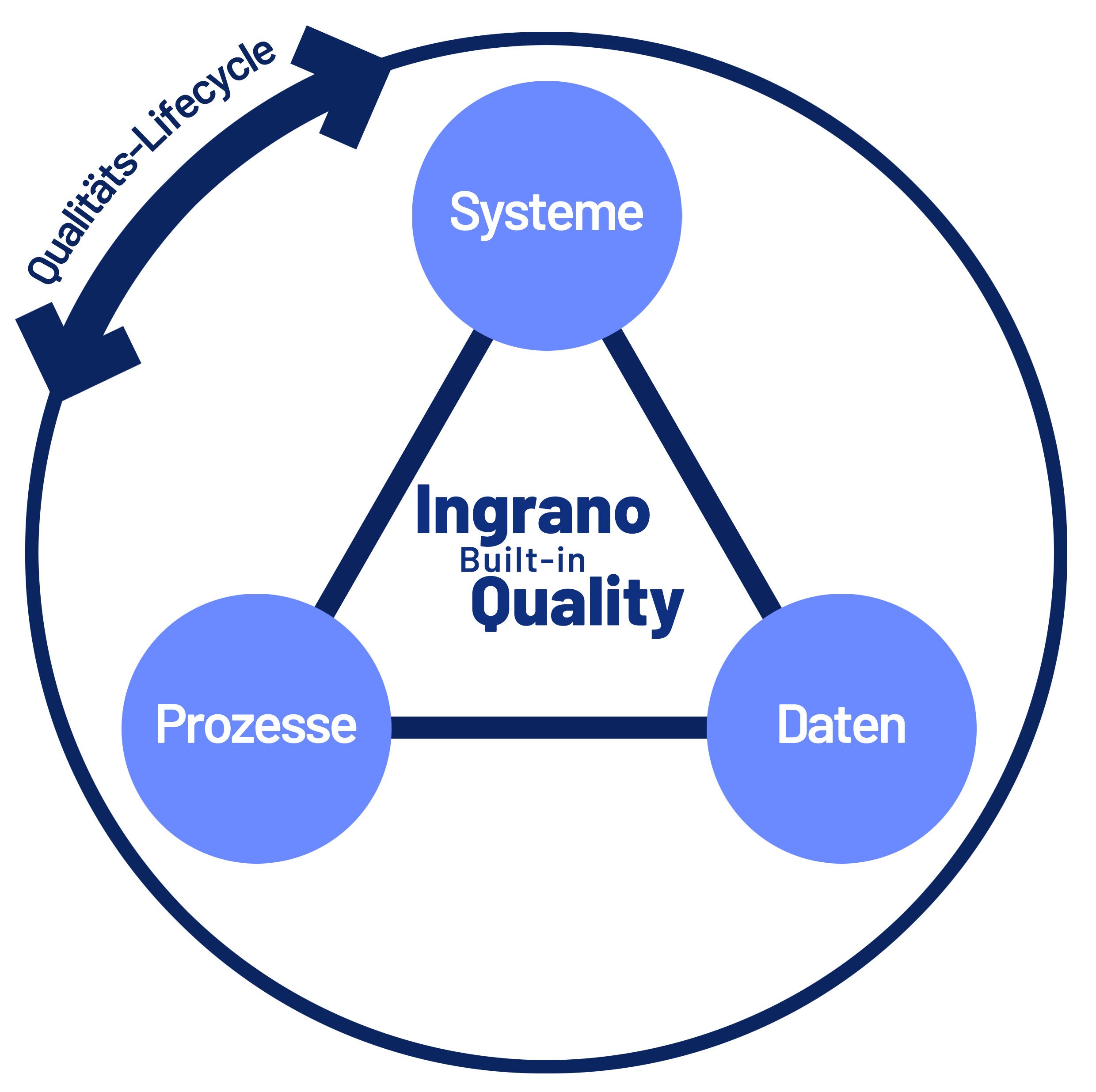 Unser Versprechen an Sie: Qualität von Anfang an für Systeme, Prozesse und Daten, zugeschnitten auf Ihre individuelle Situation – dafür steht Ingrano Built-in-Quality.